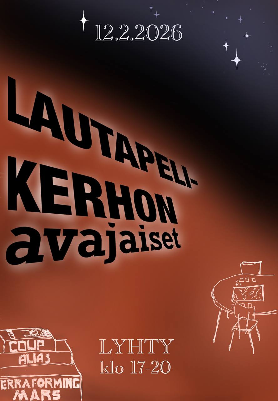 Tilaisuus on siis avoin kaikille, eikä siihen osallistuminen velvoita sinua liittymään kerhon toimintaan. Voimme illan aikana myös keskustella siitä, miten usein tuleva kerho tahtoo tavata, ja mitä kerholta halutaan. Halukkaat voivat sitten liittyä Telegram-ryhmään, jossa tulevista pelihetkistä sovitaan. 💫
