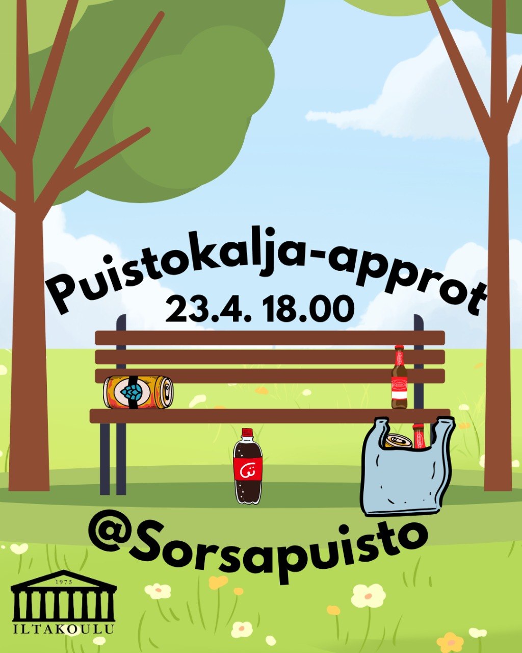 Kiristääkö wappu kukkaroa? Etkö halua käyttää approihin 20 €. Meillä on ratkaisu ongelmiisi. PUISTOKALJA-APPROT 23.4 kello 18.00 eteenpäin. Näiden approjen idea on helppo. Kerää kaverit, kierrä Tampereen upeita puistoja juoden omia juomiasi. Leiman passiin saat palauttamalla pisteelle tyhjän tölkin. Haalarimerkin saat, kun olet saanut passin täyteen (6 leimaa) ja palautat sen koskipuiston maaliin. Liput tulevat myyntiin 15.4 kello 13.00 ja yhden lipun hinta on 5 €. Iltakoululaisilla on mahdollisuus ostaa myös jatkolippu illan kolmioille!!